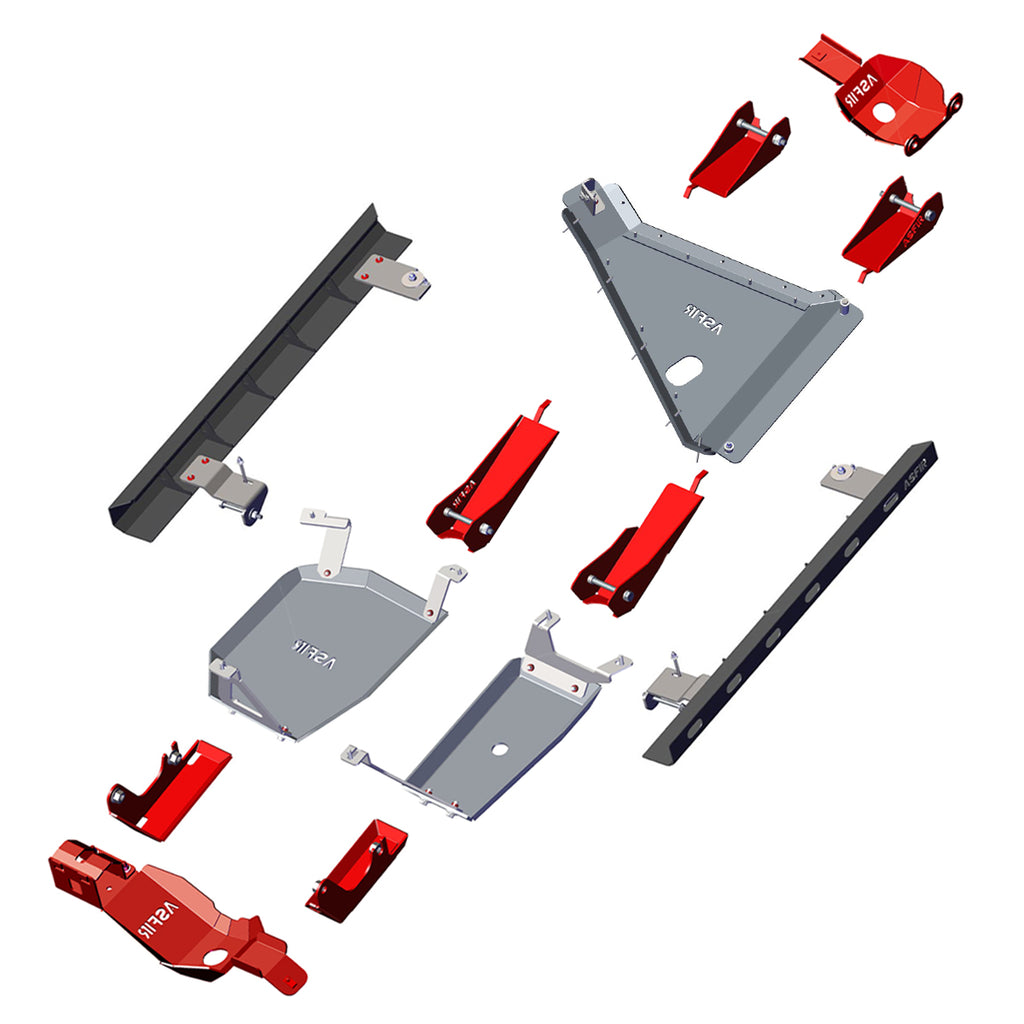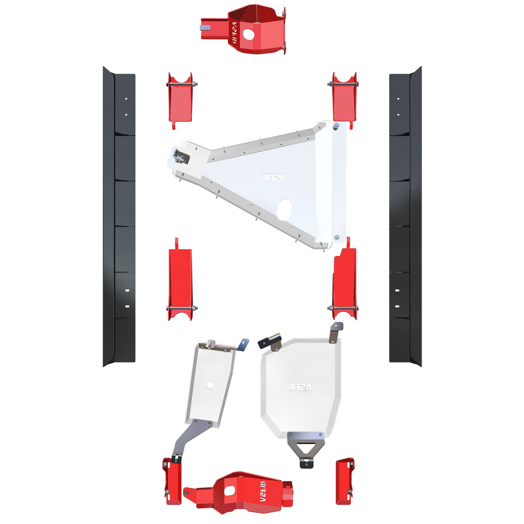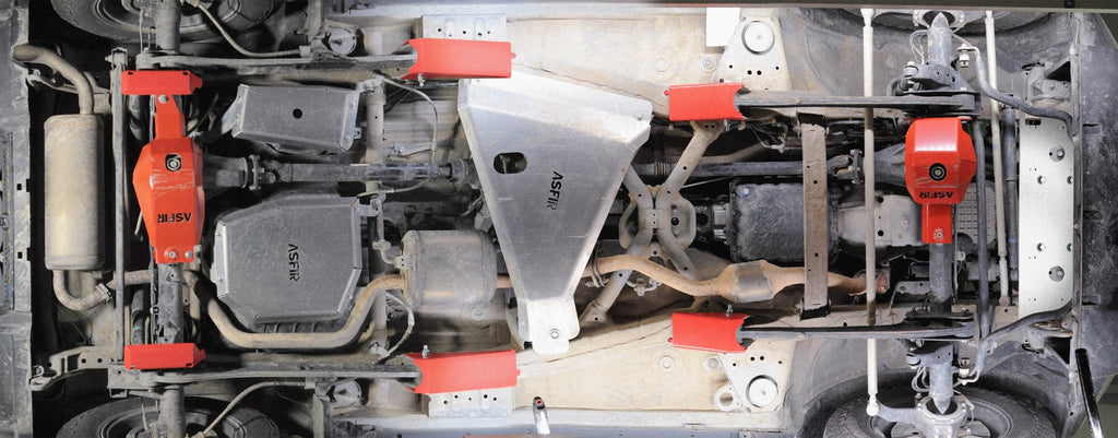 • הערכה מכילה: מיגון העברה מחוזק (517161), מיגול דפרנציאל קדמי (517165), מיגון דיפרנציאל אחורי (517166), מיגון מיכל דלק (517170), מיגון מערכת דלק (517171), מיגון זרועות רדיוס (517172), מגן בולם אחורי (517173), מיגון סף (517150). • המיגונים של אספיר מספקים את שטח ההגנה המקסימלי תוך התחשבות בחלקי הרכב הרגישים • המיגונים מכילים פתחי אוורור אשר פותחו במיוחד למניעת התחממות מכלולי הרכב וכן מהווים פתחי יציאה לאבנים ובוץ אשר עלולים להיכנס לחלל המיגון בעת הנסיעה בשטח. • המיגונים מכילים פתחי שירות המאפשרים נגישות מירבית למכלולים הרלוונטיים לתחזוקה השוטפת של הרכב • המיגונים מתחברים לשלדת הרכב באמצעות מחברי ברזל מחוזקים (ברקטים) התומכים את המיגון ומספקים לו עמידות מירבית תוך השארת "מרווח נשימה והגנה" למכלולי הרכב. כל הברקטים עוברים תהליך פסיבציה המגנה עליהם פגעי מזג-אוויר ומונעת החלדה. • כלל החיבורים על פני המיגון התחתונים נעשים באמצעות ברגים שקועים בעלי חשיפה מינימלית לנזק ממכות חיצוניות וסכנה של "גזירת הברגים". • המיגון עשוי מאלומיניום (5202) בעובי 6 מ"מ. אלומיניום מאפשר הגנה מקסימלית תוך שמירה על גמישות המאפשרת ספיגת מכות וזעזועים מבלי להעביר אותם לשלדת הרכב. • כלל המיגונים עוברים ליטוש שמעניק להם חזות מרשימה ומאפשר תחזוקה שוטפת בנוחות מירבית. • כלל המיגונים מפותחים ומיוצרים בישראל במפעל אספיר בעמק יזרעאל ועוברים בקרת איכות ברמה הגבוהה ביותר. • ההתקנה מתבצעת באמצעות ברגים בלבד לנקודות ייעודיות בשלדת הרכב בשיטת Bolt-On. ללא צורך בקידוחים בשלדת ברכב. • כל ערכת מיגון עוברת בדיקות קפדניות ומבחני נסיעת כביש ושטח כחלק מתהליך הפיתוח ההנדסי.
