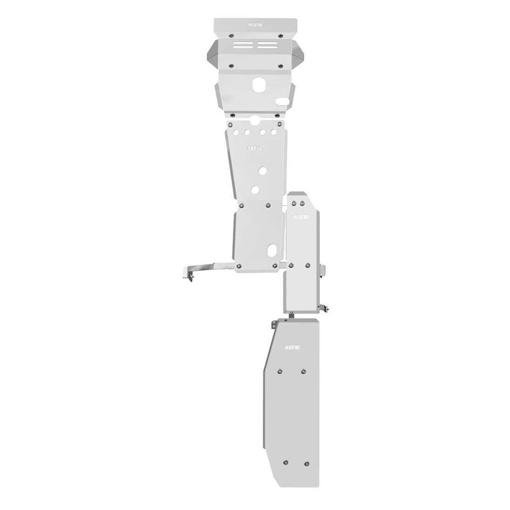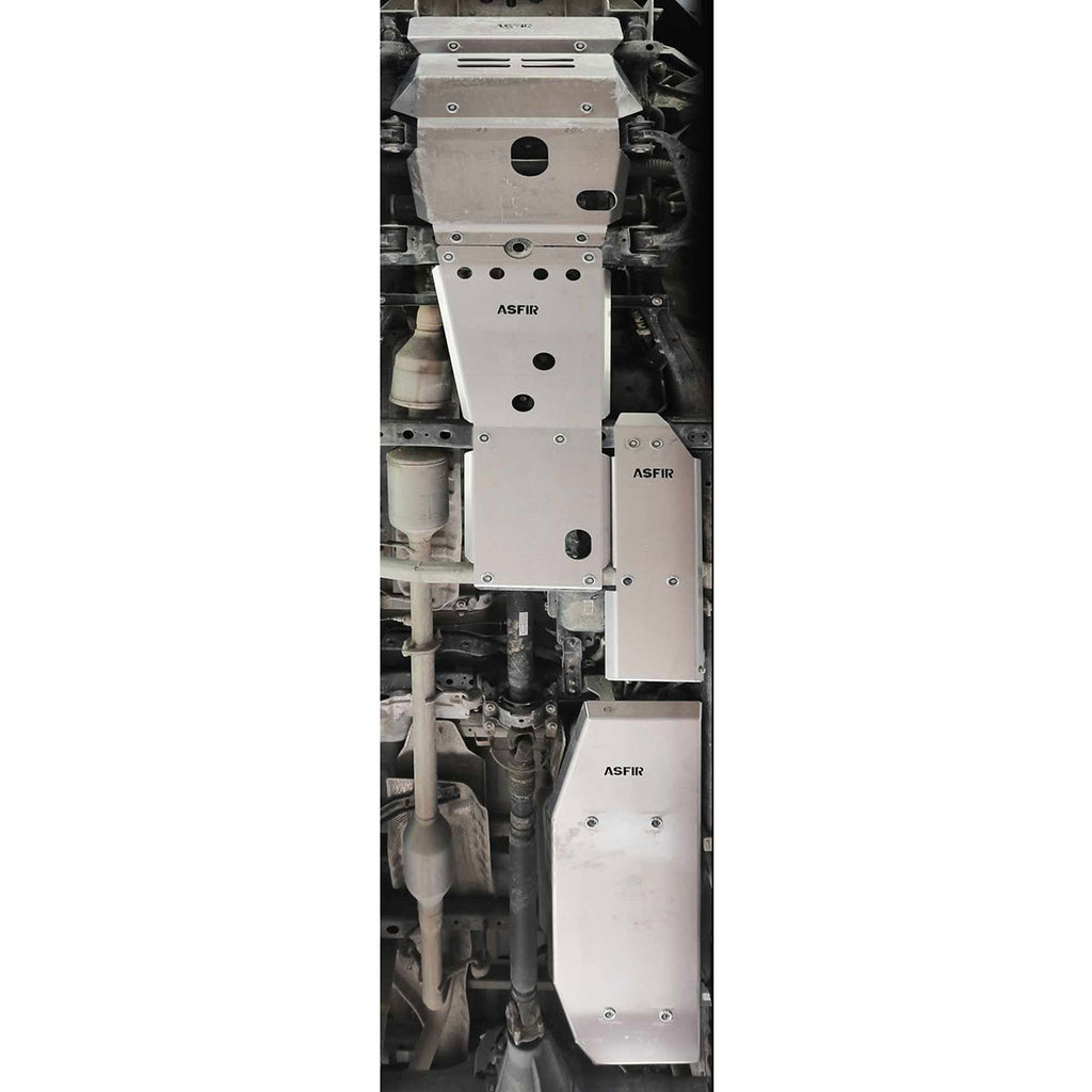 • הערכה מכילה: מיגון גחון (533255), מיגון גיר העברה (533262), מיגון דלק (533273), מיגון מיכל אוריאה (533274) • המיגונים של אספיר מספקים את שטח ההגנה המקסימלי תוך התחשבות בחלקי הרכב הרגישים • המיגונים מכילים פתחי אוורור אשר פותחו במיוחד למניעת התחממות מכלולי הרכב וכן מהווים פתחי יציאה לאבנים ובוץ אשר עלולים להיכנס לחלל המיגון בעת הנסיעה בשטח. • המיגונים מכילים פתחי שירות המאפשרים נגישות מירבית למכלולים הרלוונטיים לתחזוקה השוטפת של הרכב • המיגונים מתחברים לשלדת הרכב באמצעות מחברי ברזל מחוזקים (ברקטים) התומכים את המיגון ומספקים לו עמידות מירבית תוך השארת "מרווח נשימה והגנה" למכלולי הרכב. כל הברקטים עוברים תהליך פסיבציה המגנה עליהם פגעי מזג-אוויר ומונעת החלדה. • כלל החיבורים על פני המיגון התחתונים נעשים באמצעות ברגים שקועים בעלי חשיפה מינימלית לנזק ממכות חיצוניות וסכנה של "גזירת הברגים". • המיגון עשוי מאלומיניום (5202) בעובי 6 מ"מ. אלומיניום מאפשר הגנה מקסימלית תוך שמירה על גמישות המאפשרת ספיגת מכות וזעזועים מבלי להעביר אותם לשלדת הרכב. • כלל המיגונים עוברים ליטוש שמעניק להם חזות מרשימה ומאפשר תחזוקה שוטפת בנוחות מירבית. • כלל המיגונים מפותחים ומיוצרים בישראל במפעל אספיר בעמק יזרעאל ועוברים בקרת איכות ברמה הגבוהה ביותר. • ההתקנה מתבצעת באמצעות ברגים בלבד לנקודות ייעודיות בשלדת הרכב בשיטת Bolt-On. ללא צורך בקידוחים בשלדת ברכב. • כל ערכת מיגון עוברת בדיקות קפדניות ומבחני נסיעת כביש ושטח כחלק מתהליך הפיתוח ההנדסי.
